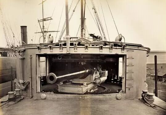“扬威”舰为中国第一批真正意义上的近代化巡洋舰,此图为“扬威”舰舰尾炮房特写,从中可以十分清楚地看到10 英寸主炮的构造