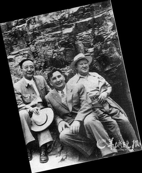 1954年,苏联大使尤金(右一)、苏联驻华总顾问阿尔希波夫(右二)与郭沫若在一起