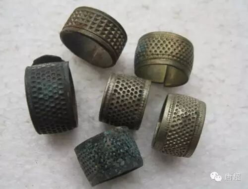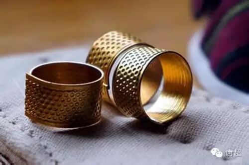 “顶针箍”黄亮亮的像一只金戒指,上面有许多小小圆凹,旧时家庭必备之物,扎鞋底时,针扎不进去,就得请套在中指上的“顶针箍”来帮忙,把针尾顶在“顶针箍”的圆凹里用力一顶,那针头就进去啦。缝棉被、棉袄等厚棉织物也可使用。