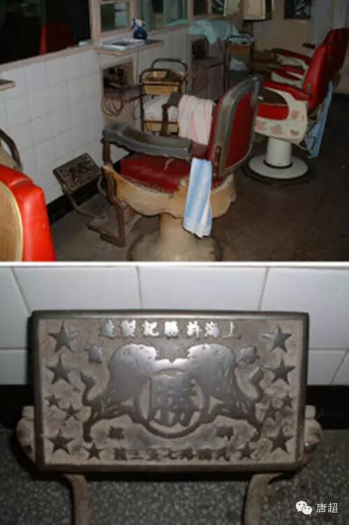 这种笨重的铁质理发椅,客人坐在上面很适意,稳当,两只脚放在踏板上,铁椅向上升起,感觉一下就好起来了。