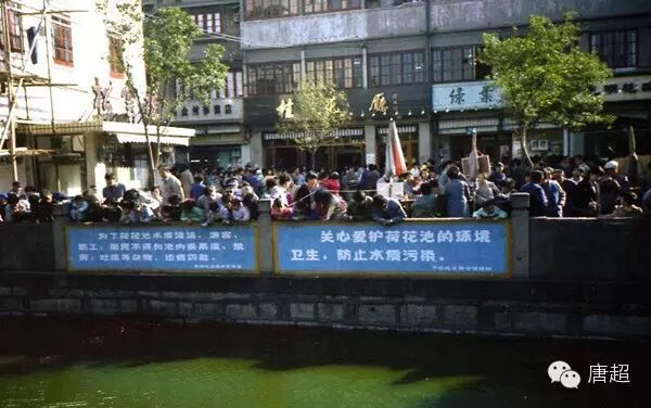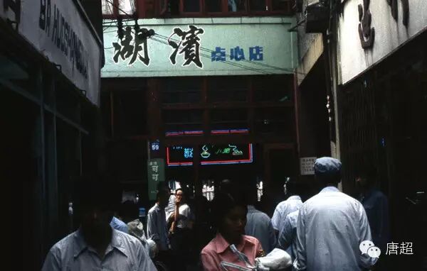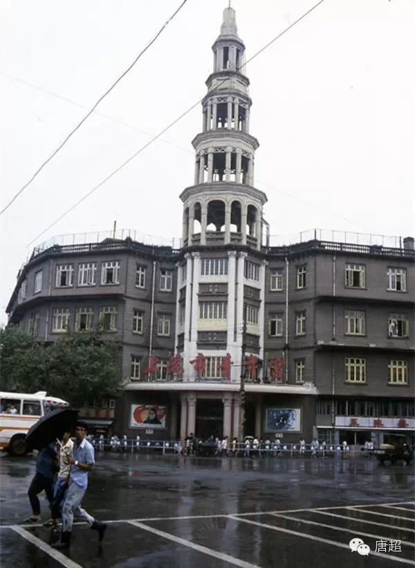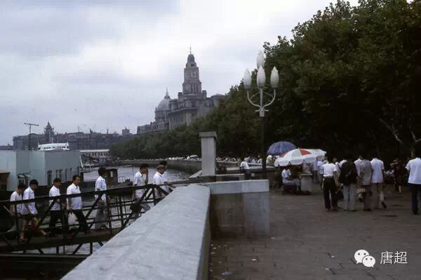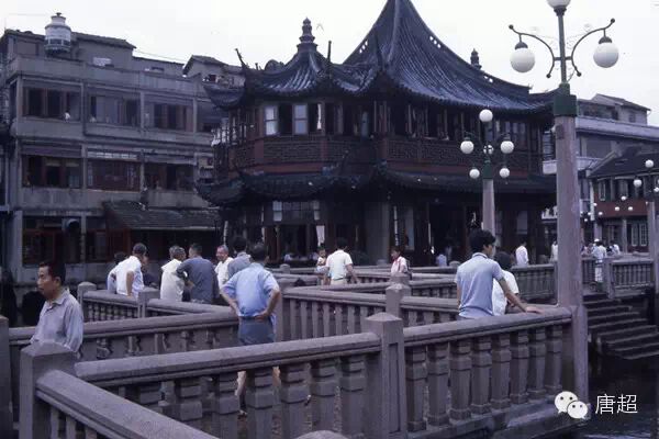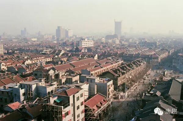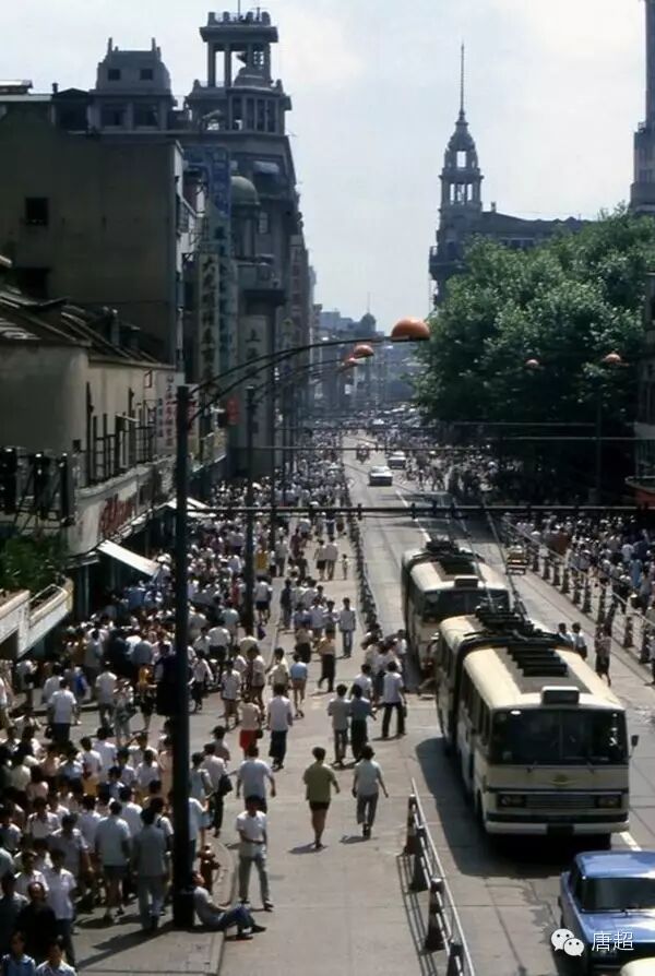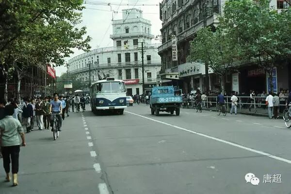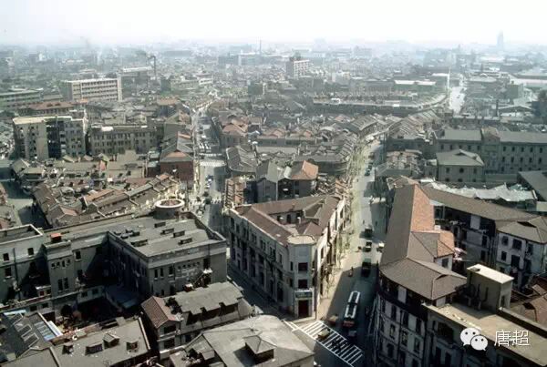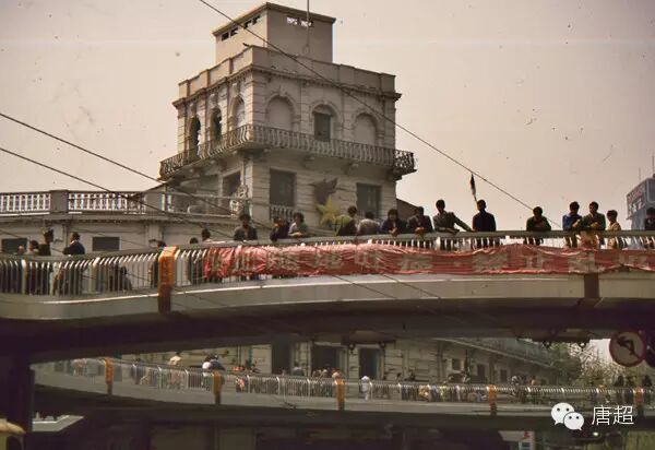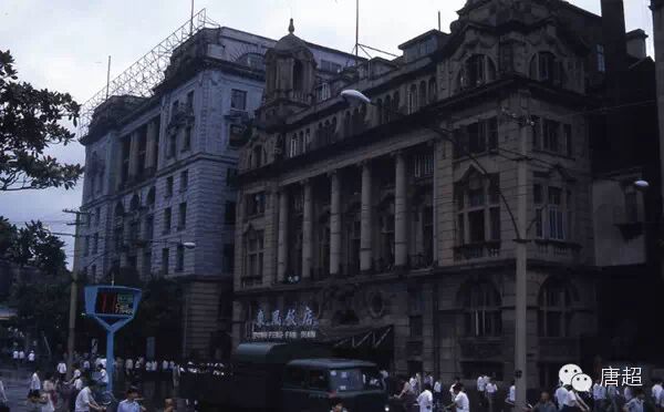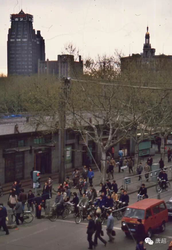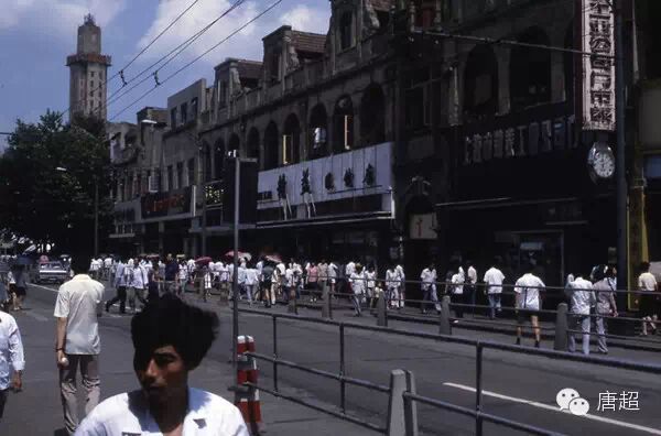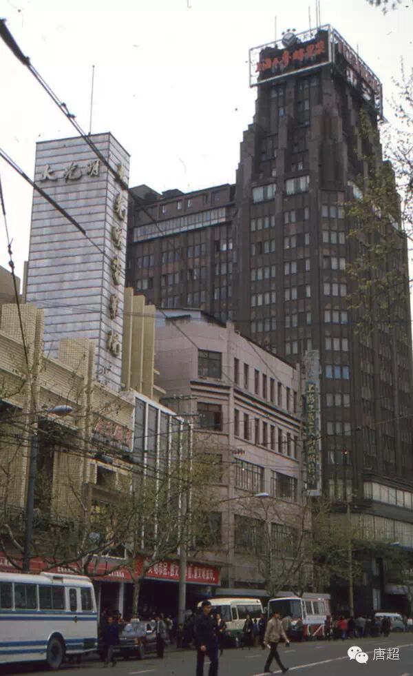 外滩东风饭店,往南向可看到延安东路的人行天桥,蓝色的是当时流行的噪音分贝显示器。