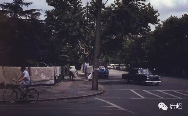 陕西南路长乐路口东望,左侧晒被子处往北向就是红房子西餐社