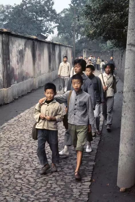 街边休息,那时候大人孩子都喜欢军品,包括解放军用的帆布挎包。