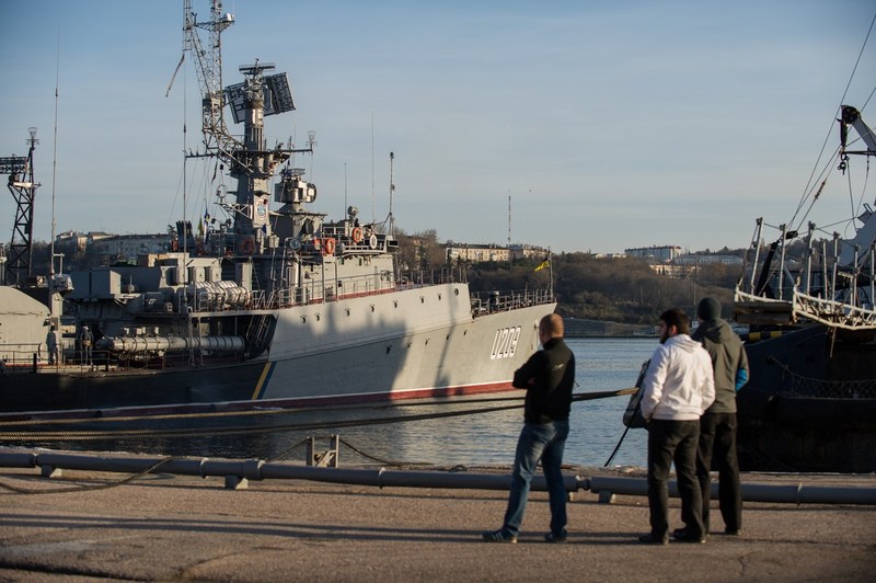 ◢ 1 ◣ 乌克兰海军士兵持枪守卫战舰。