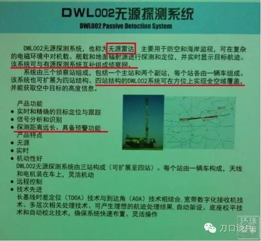 对付隐形目标,还可以采用无源探测系统,具体原理可以问度娘。下图是DWL002无源探测系统的展板,主要性能资料里已有介绍,请点击图片。它可以与有源探测系统互补组成侦察网。