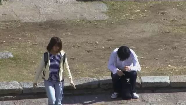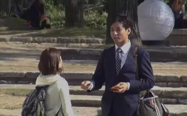 实验正式开始!女主锁定了第一位被测试者:一位坐在路边的白衬衫帅锅。女孩开始试着去向他借钱。
