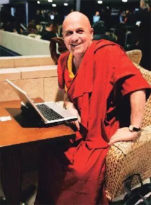 僧侣:我还在念大学的时候看到了一个介绍喜马拉雅的修行者的纪录片,感到非常震撼。我觉得“如果有人有办法达到完美的境界,就一定是这个样子”。西藏佛教大师没有打算发展一种新的理论,而是忠于上千年的心灵传承,成为有成就的继承者。因为你和母亲的关系,我认识很多哲学家、思想家、艺术家、诗人、科学家……可是他们虽然在各自的领域中都是天才,但这些知识和才华并不能让他们成为好的人。一位伟大的诗人可能是一个混蛋,一位科学家可能对自己不满,一位艺术家可能自恋和骄傲。我总觉得缺少了什么感觉。反而那些西藏大师让我看到一种非常不同的感觉,他们的生活方式似乎就反映了他们所教导的一切。于是我决心去找他们。