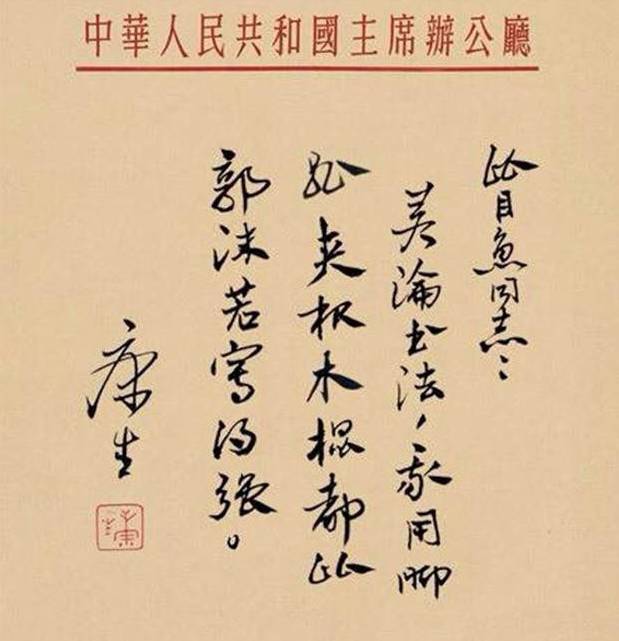 康生擅书法、也擅画,对收藏研究渊深,有极高造诣。康生虽是历史罪人,但他出生于书香世家,从小受到家族薫陶,尤其擅长书法、中国画,有着极高的艺术造诣。康生的书法真草篆隶众体皆能,特别是章草自成一体,堪称大家。自古都有“文人相轻”之说,康生就是典型的才气文痞,而且自负不堪!由于当时人们习惯在书法上把他和郭沫若相提并论,对此他很不服气,曾扬言:“郭沫若的字,也叫书法?我用脚夹根木棍都比郭沫若写的强!”。下面,再来看看康生的书法吧。