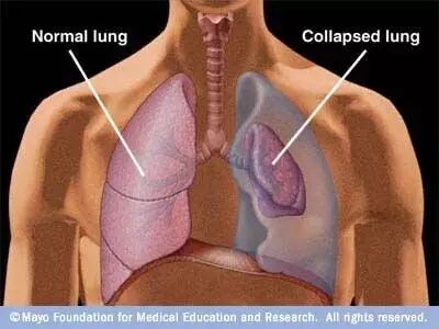 左边是正常的肺,右边是被空气挤压而塌陷的肺