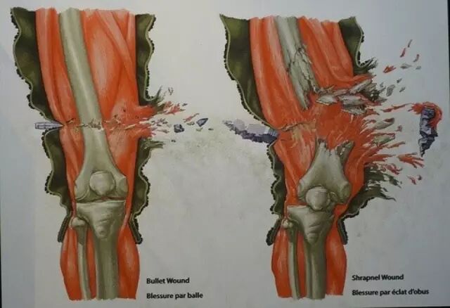 而炸弹爆炸时产生的弹片的扩张力度就更大,有人做了图,将子弹穿过人体和炸弹弹片穿过人体的一瞬进行对比: