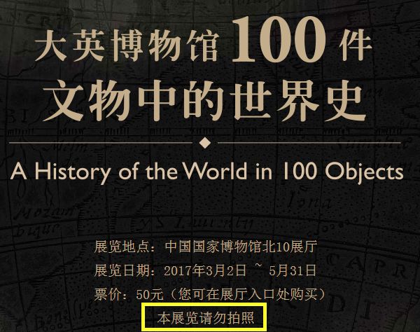 ▍2017 年 3 月到 5 月在中国国家博物馆举行的大英博物馆馆藏文物特展就不允许观众拍照