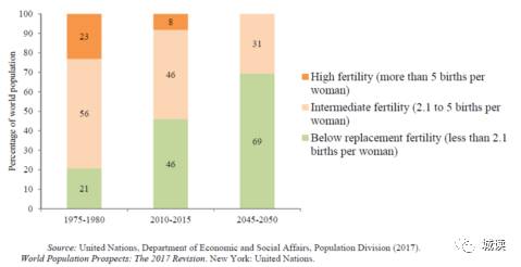预计2045-2050期间,世界69%的人口将生活在生育率低于更替水平的国家和地区。
