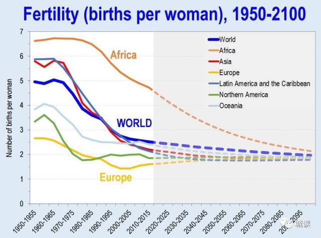 1960年代以来,全球平均出生率不断下降,目前每个妇女平均生育2.5个孩子。不过,世界各国出生率差异很大,非洲出生率为4.7,欧洲只有1.6。