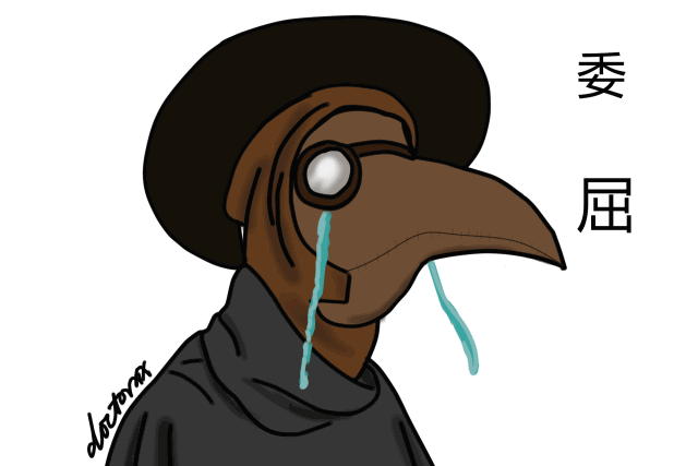⊙ 脸藏在状如鸟嘴的面具里,将棉花等填充物塞入面具的口鼻位置,充当防毒面具