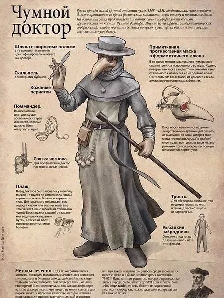 为了防止在接触患者过程中感染,1619年,一名叫Charles de Lorme的法国医生,发明了一套蒸汽朋克风的防护衣,造型相当狂野。