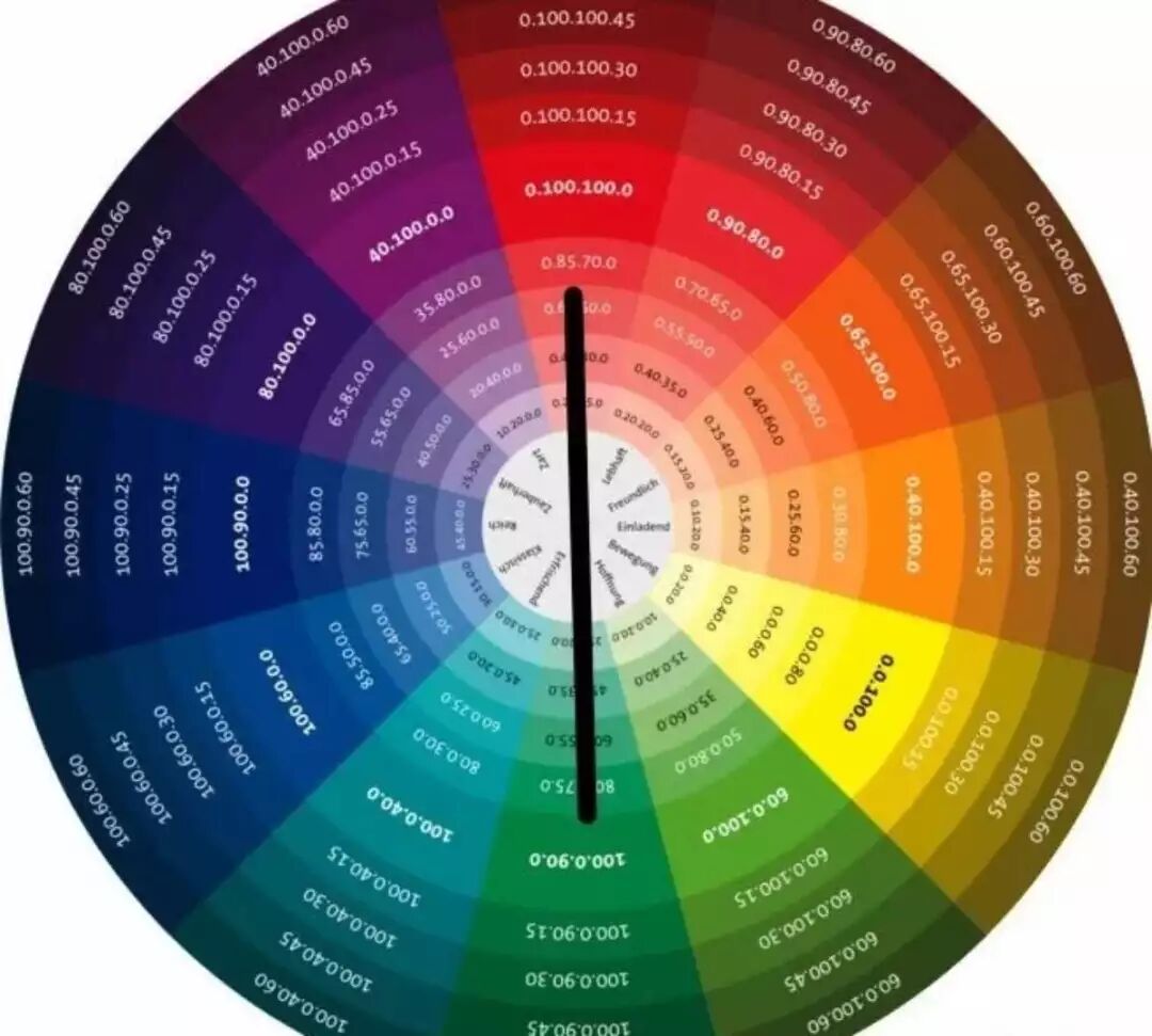 下面这张图叫做色环,180度直线连接的两种颜色叫做互补色,红对绿,蓝对橙。
