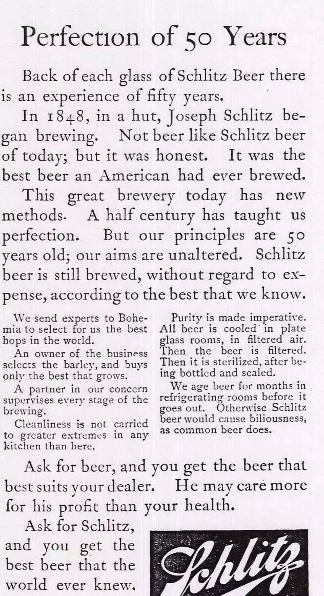 后来消毒灭菌理念逐渐被大家认识,19世纪著名啤酒品牌喜立滋最经典广告词为: