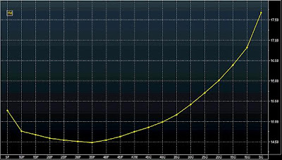 Today the WSJ had an article about several hedge funds betting on weaker Euro. The demand for puts shifted the implied volatility smile to the left:
