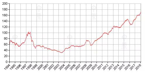 2004年SARS退去之后,香港房价重新走回了上涨通道,直至2015年9月达到最高峰,相比2003年7月,这12年一共上涨424%,年均上涨35%。