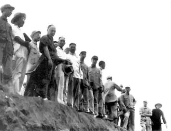 1949年6月,陈毅市长和赵祖康持帽者等视察浦东海塘。