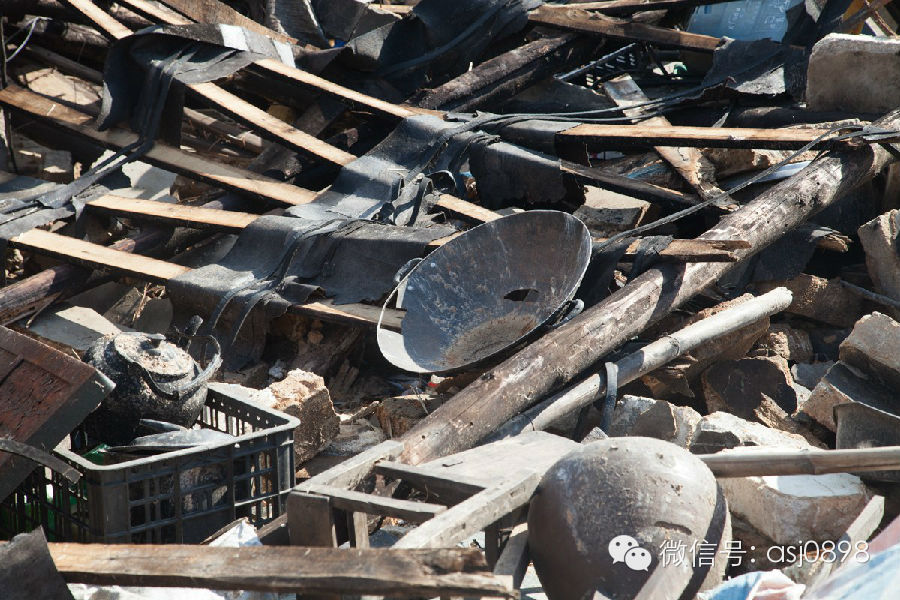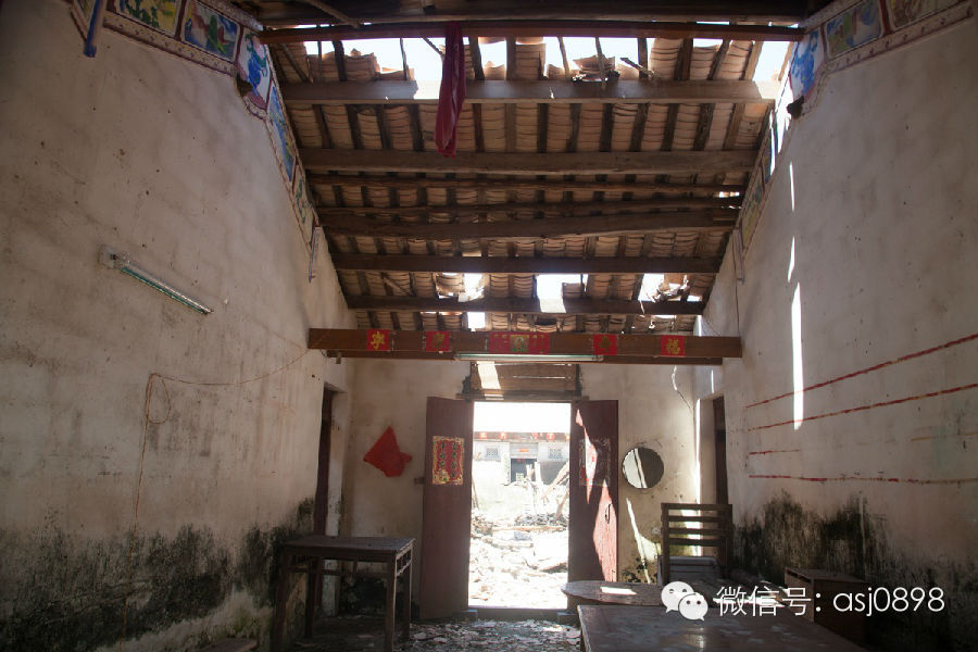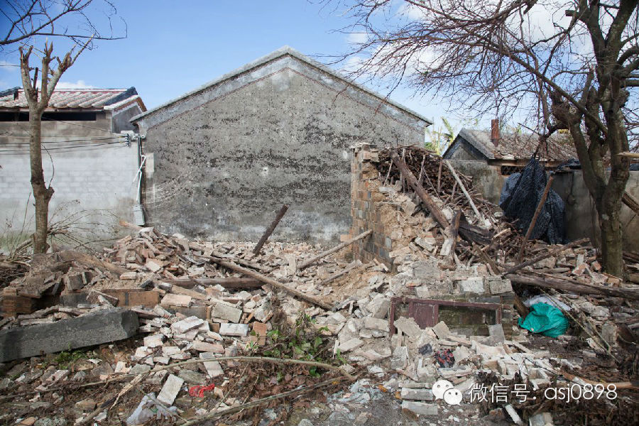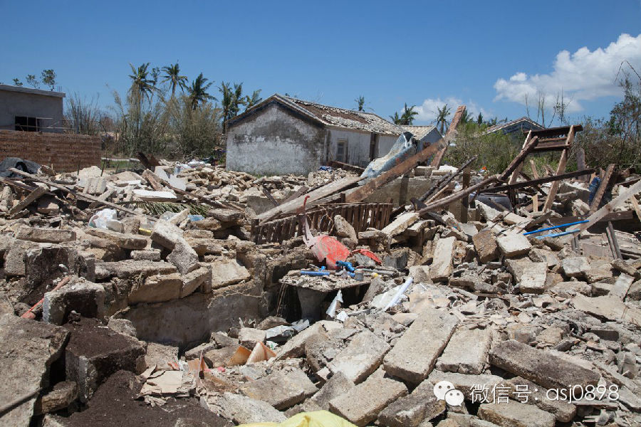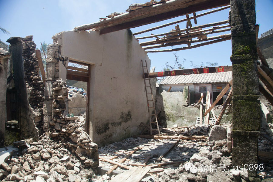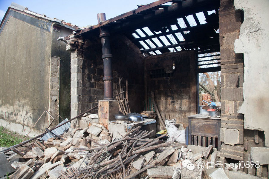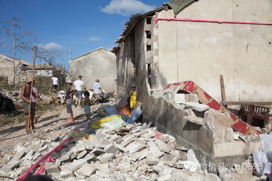 我们此行没有具体的目的地,只是想把物资送到最偏远受灾最严重的村镇去。我们第一站到达冯坡镇三坡村,我看到有部分房屋已经被台风夷为平地,锅碗瓢盆散落在一片残砖瓦砾中,令人痛心。当我们得知该村目前救灾物资比较充裕时,我们没有过多停留,继续赶往下一村。