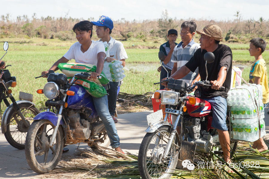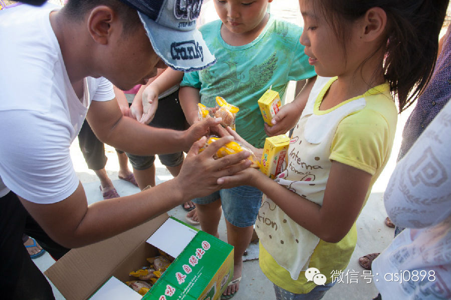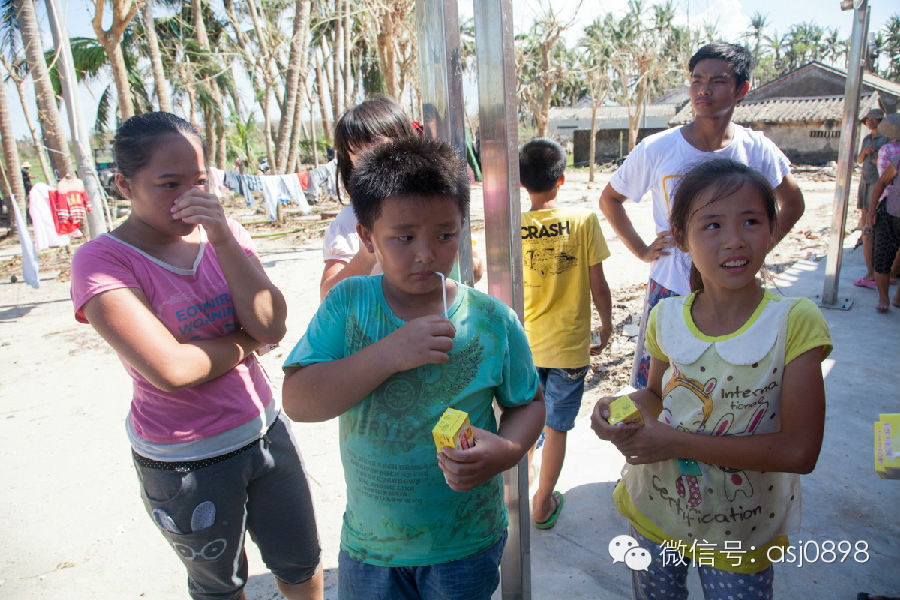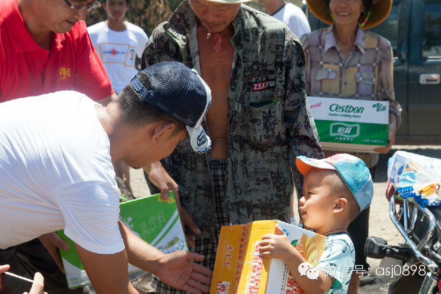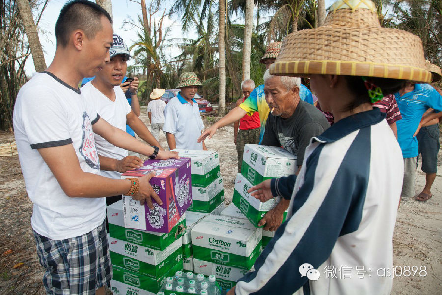 到 达翁田边福土沙村时,已经是下午三点多了。正好遇上村民在领取政府发放的救灾物资,有大米、方便面和矿泉水,村长告诉我们现在政府的补给物资基本能保障灾 民的生活。虽然如此,我们还是将一部分食品分发给了小孩和老人。恰在这时,我们的一位领队接到了海口的一个电话,称在冯坡镇在古山村受灾非常严重,许多村 民断水断粮,请求支援,需要我们迅速赶过去。于是,我们又赶紧往冯坡镇回赶。