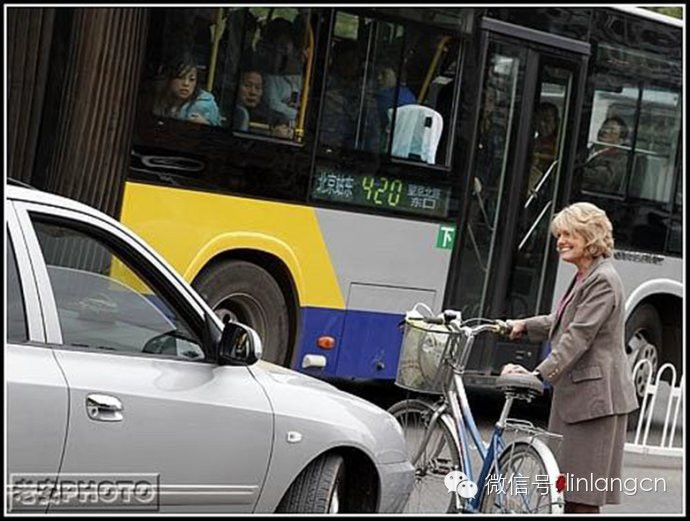 一个女人,还是老外,势单力薄,只有看着司机在非机动车道上驶去。