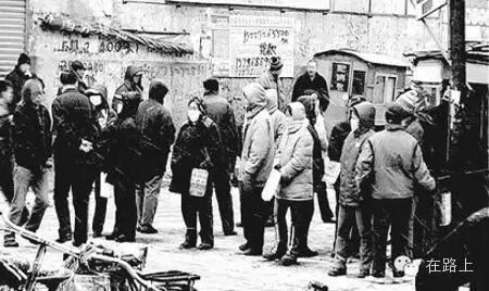 冬天,雪花飞舞,找活儿的男男女女把手抄在袖子里,找工作的牌子悬挂在手小臂处,冻得直跺脚。戚小光就踱在这人群里,等他把机器从大衣怀里掏出来时,有人拦着镜头喊:“拍什么拍,电影都是假的,只有战争片是真的。”