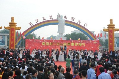 今年国庆六十五周年,为三十八对青年举办了集体婚礼。村里的青年登记后每人都能分到一套房子。