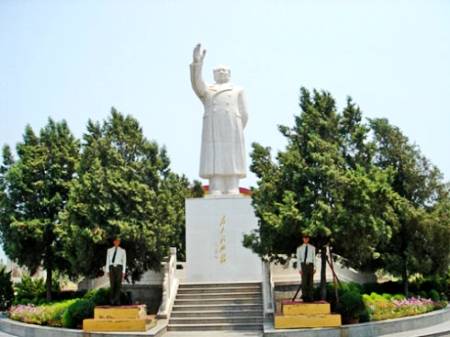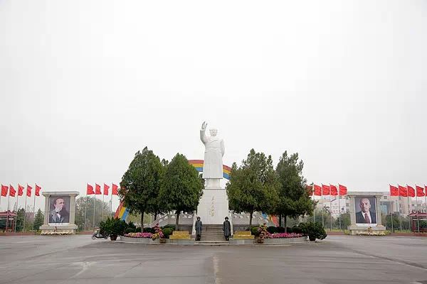 毛泽东的雕像如守护神一样耸立在南街村的广场上。