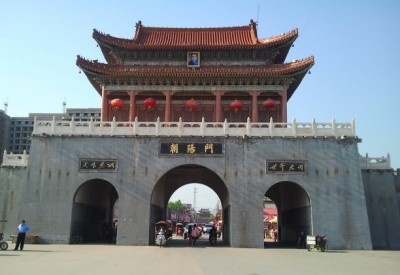 在朝阳门广场上,矗立着雄伟的“朝阳门”城楼,城楼上有孙中山的画像,刻有“天下为公,世界大同”的字句。夜晚,彩灯的光华,使朝阳门广场显得更加雄伟壮观。