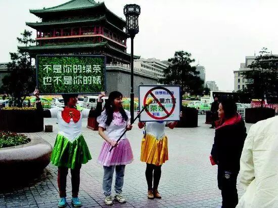 2013年4月,西安女青年街头呼吁停止“绿茶婊”等语言暴力