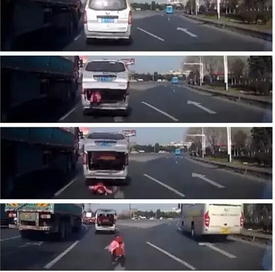 让人庆幸的是后面的好心车主救起孩子,并交回给老人,爷孙团聚;