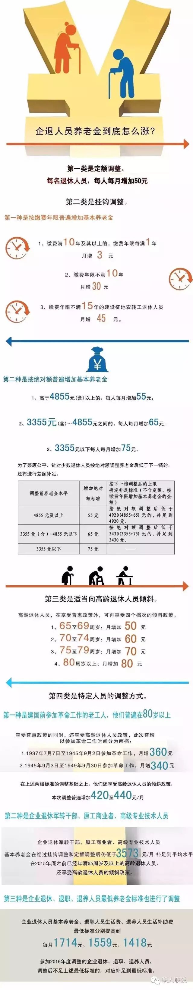 到底肿么涨捏?用专业术语讲,本次调整采取的是定额调整+挂钩调整+适当倾斜相结合的办法。通俗滴讲是酱紫滴: