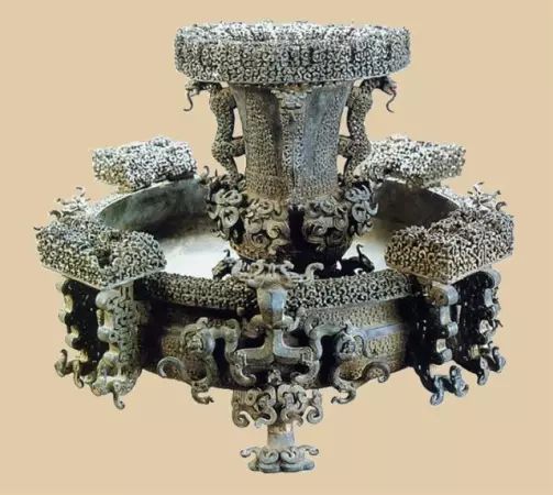 曾侯乙尊盘,战国早期文物。1978年在湖北随州市擂鼓墩曾侯乙墓中出土,收藏于湖北省博物馆。全套器物通高42厘米,口径58厘米,重约30公斤。曾侯乙尊盘是春秋战国时期最复杂、最精美的青铜器件。证实了在二千四百年前的战国早期,中国的失蜡法铸造技术已经达到极高的水准。