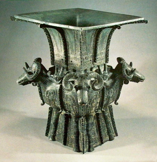 四羊方尊,商朝晚期青铜礼器,祭祀用品。1938年出土于湖南省宁乡市宁乡县黄材镇月山铺转耳仑的山腰上。收藏于中国国家博物馆。四羊方尊是中国仍存商代青铜方尊中最大的一件,其每边边长为52.4 厘米,高58.3厘米,重量34.5公斤,被史学界称为“臻于极致的青铜典范”,位列十大传世国宝之一。