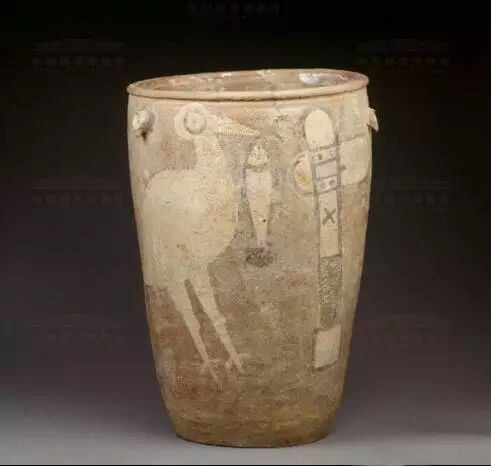 鹳鱼石斧图彩陶缸,1978年出土于河南省临汝县(今汝州市)阎村,新石器时代前期的葬具。为红陶砂质,高47厘米,口径32.7厘米,底径19.5厘米。器腹外壁的一侧就是著名的鹳鱼石斧图。图高37厘米,宽44厘米,约占缸体表面积的一半,画面真实生动、色彩和谐、古朴优美,极富意境,是迄今中国发现最早、面积最大的一幅陶画。收藏于中国国家博物馆。鹳鱼石斧图彩陶缸在2002年被列入中国首批禁止出国(境)展览文物珍贵文物之首。