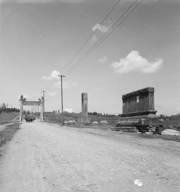 远眺明孝陵,那时候树木矮小,一条弯弯的大路直通明孝陵。