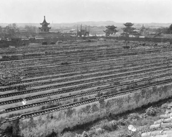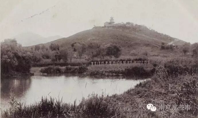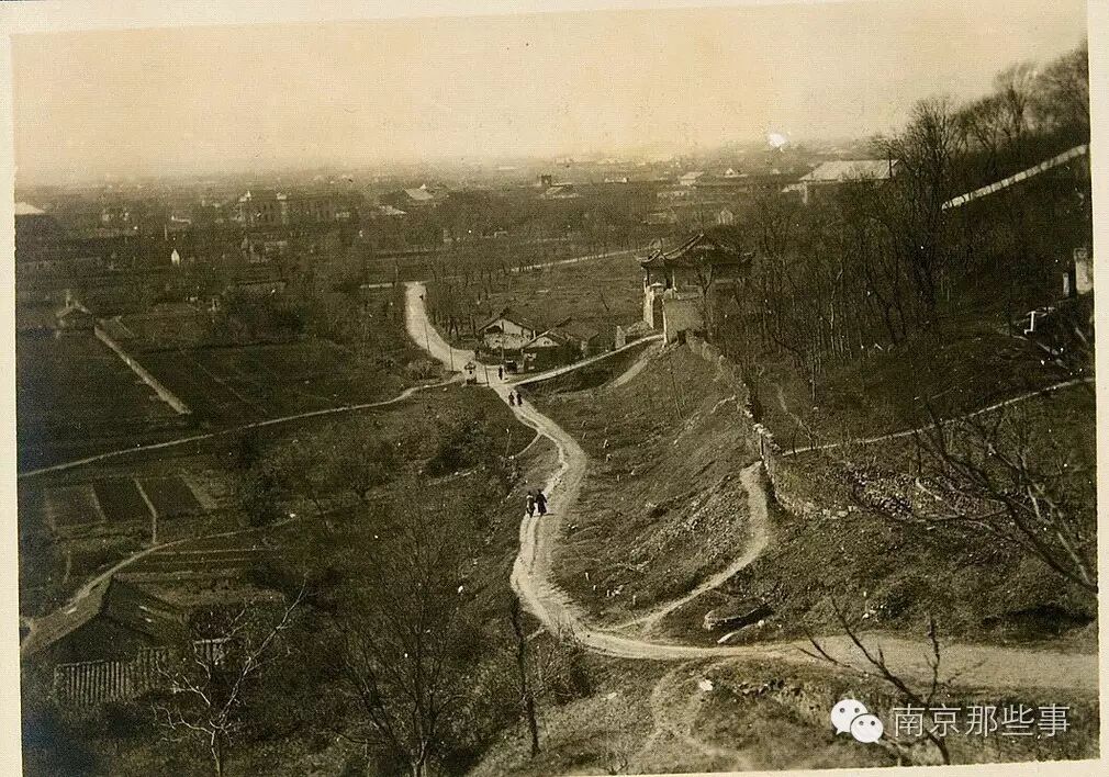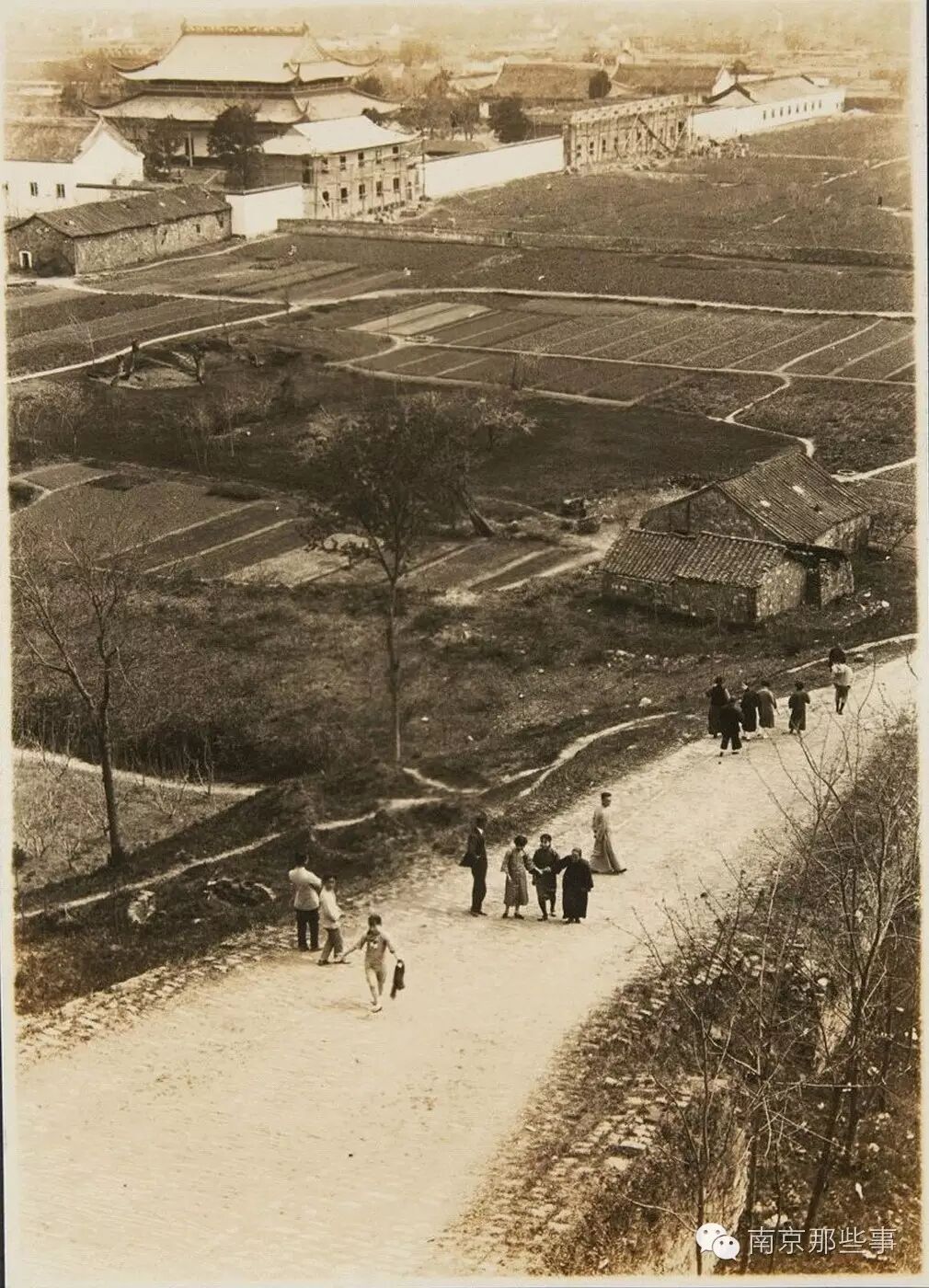 从老照片上看到,大坡的一侧是鸡鸣寺,另一侧就是武庙,后来民国时期的国民政府考试院。旁边是大片的农田。