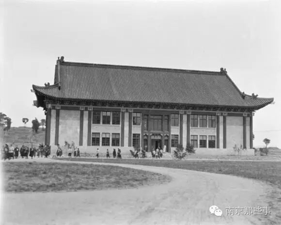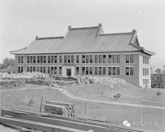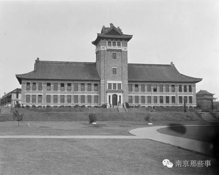 民国时金陵大学行政楼,也就是现在南大的北大楼。那时墙上还没有满满的爬山虎,后面也没有紫峰等大楼,但门前的空地和草坪还和现在一样。