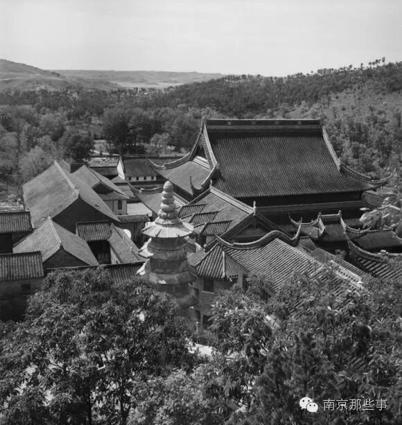清凉山及其扫叶楼。那时候还光秃秃的,几间房子扎在山坡上,像是遥远的郊外