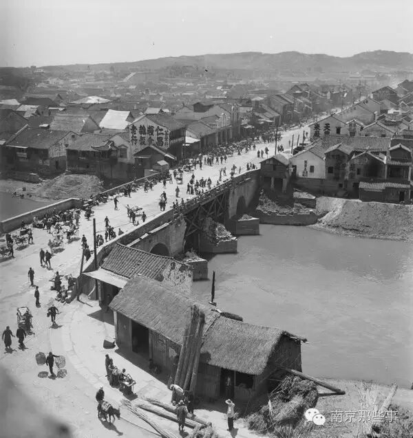 40年代初中华门外的南门外大街,远处为雨花台。长干桥于1937年被炸断,日军蹂躏的痕迹尚可辨别。