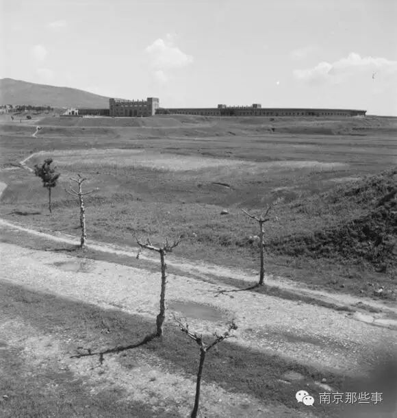 民国时期的中央体育场远眺,一片荒芜,路边的小树稀稀拉拉,除了那几座还存在的建筑,几乎找不到任何现在南京体育学院的样子。