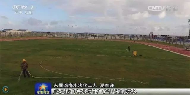虽然一年前的永暑礁,还是光秃秃的白色。现在永暑礁上标准的运动场已有大片人工草坪啦~