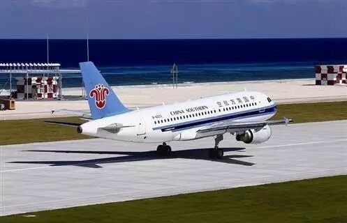 2016年1月6日,海南南沙群岛永暑礁,民航客机在南沙永暑礁新建机场起降。机场跑道长达3公里,可起降远距离型大型运输机,如运-20。赞!