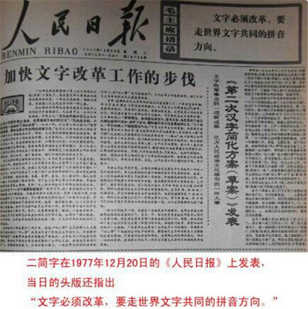 中华人民共和国成立后,奉苏联指示准备废除汉字改用拉丁文。1950年代初,汉字简化表第一稿拟出,毛泽东看过后认为第一版简化字还不够简。后与苏交恶,废除汉字运动和二简字也因此停止,废除汉字的过渡产物———简体字获保留并被定为“规范汉字”,与之相对的台湾的正体字则被定为“不规范汉字”。