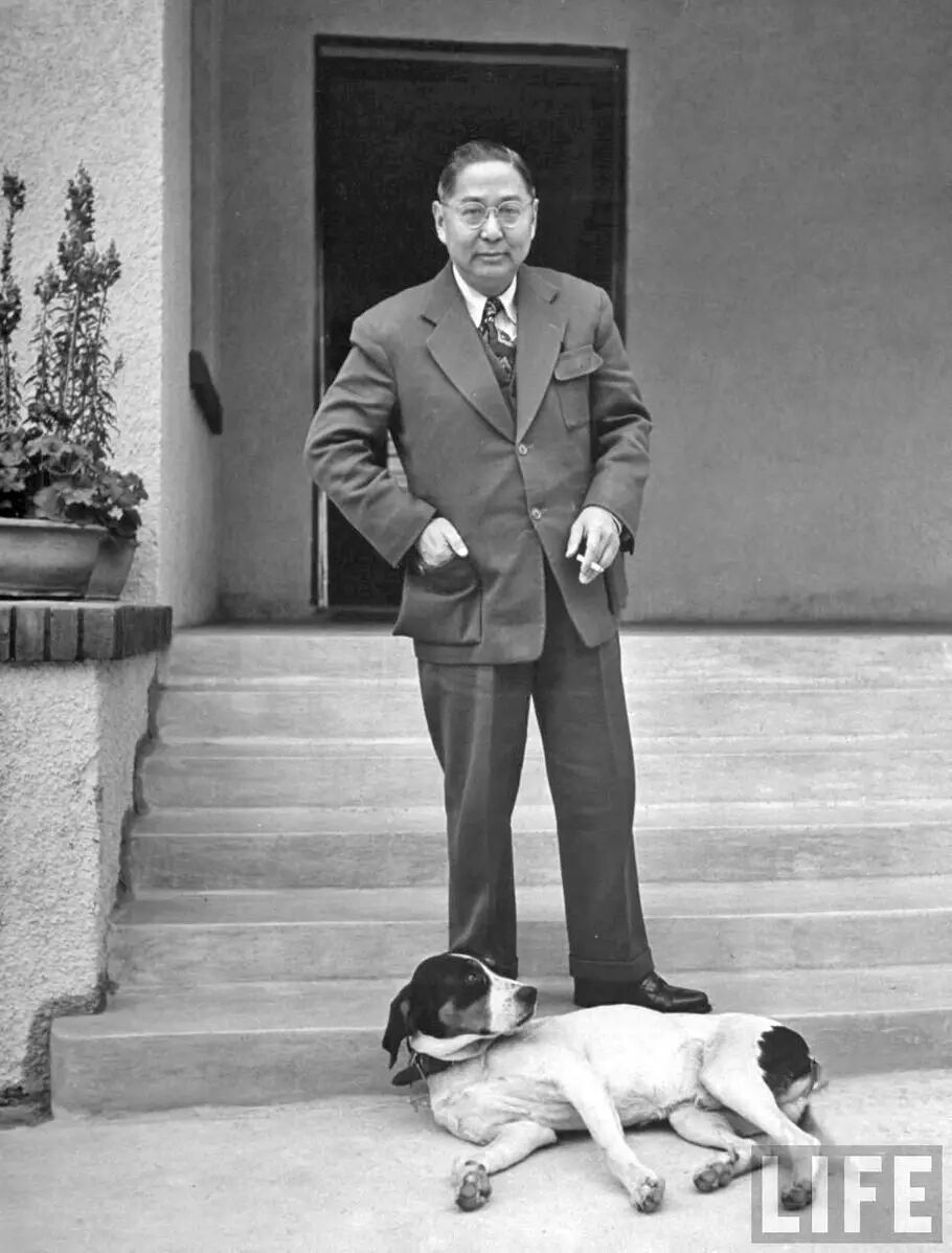 1949年3月,广州,孙科和他的猎犬。卡尔·迈当斯/摄。