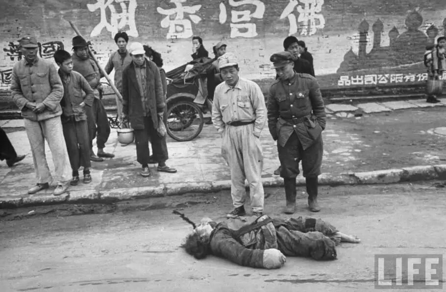 1949年3月,广州,被消防车撞倒的路人。卡尔·迈当斯/摄。