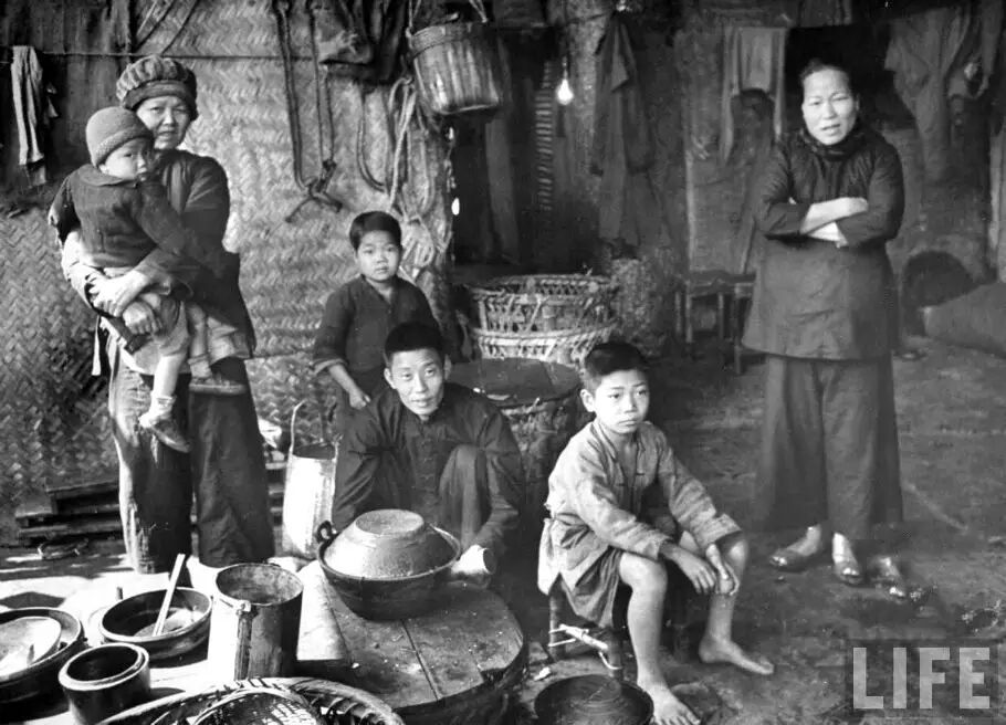 1949年3月,广州,寮屋里的居民。卡尔·迈当斯/摄。