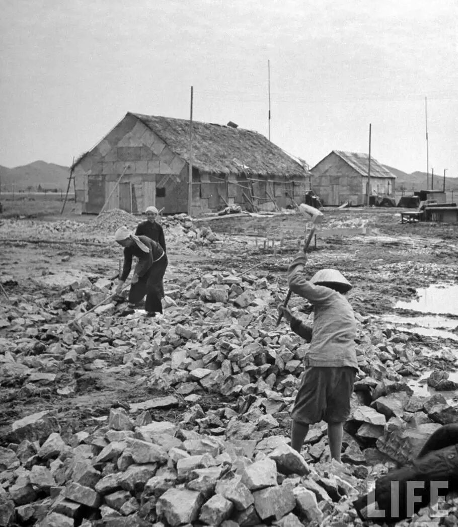 1949年3月,广州,施工中的白云机场。卡尔·迈当斯/摄。